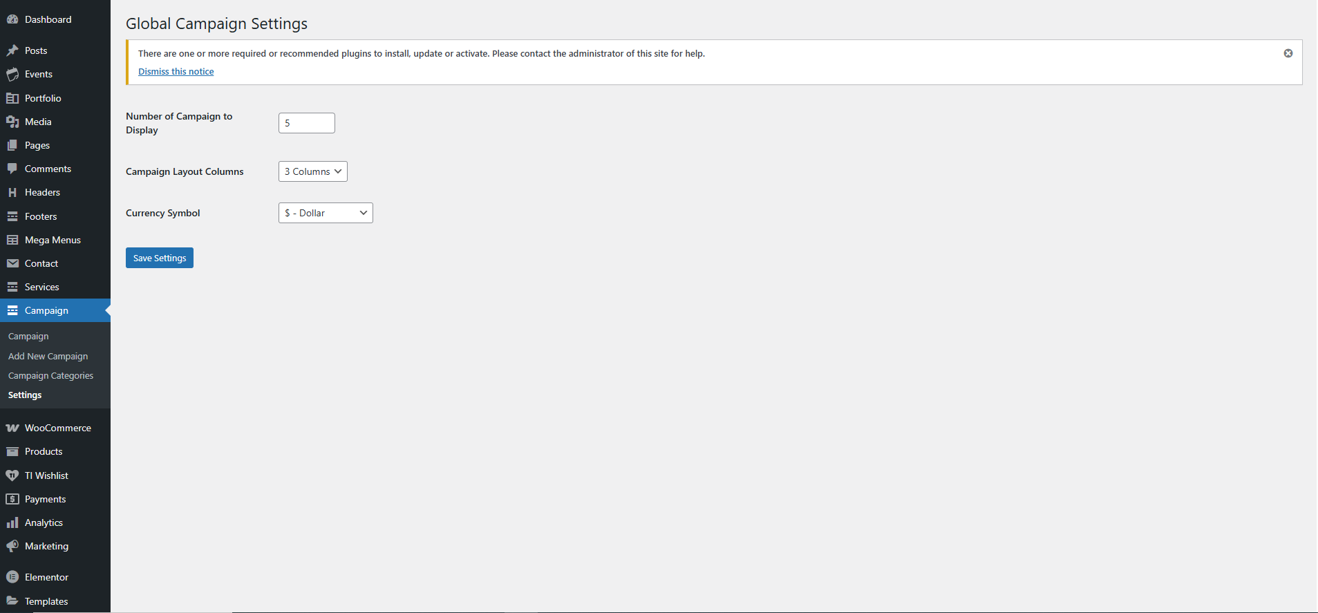 | **Campaign Layout Columns**       | Choose how many columns the campaign should be arranged in. Example: `5 Columns` will display five campaign per row in a grid layout. |