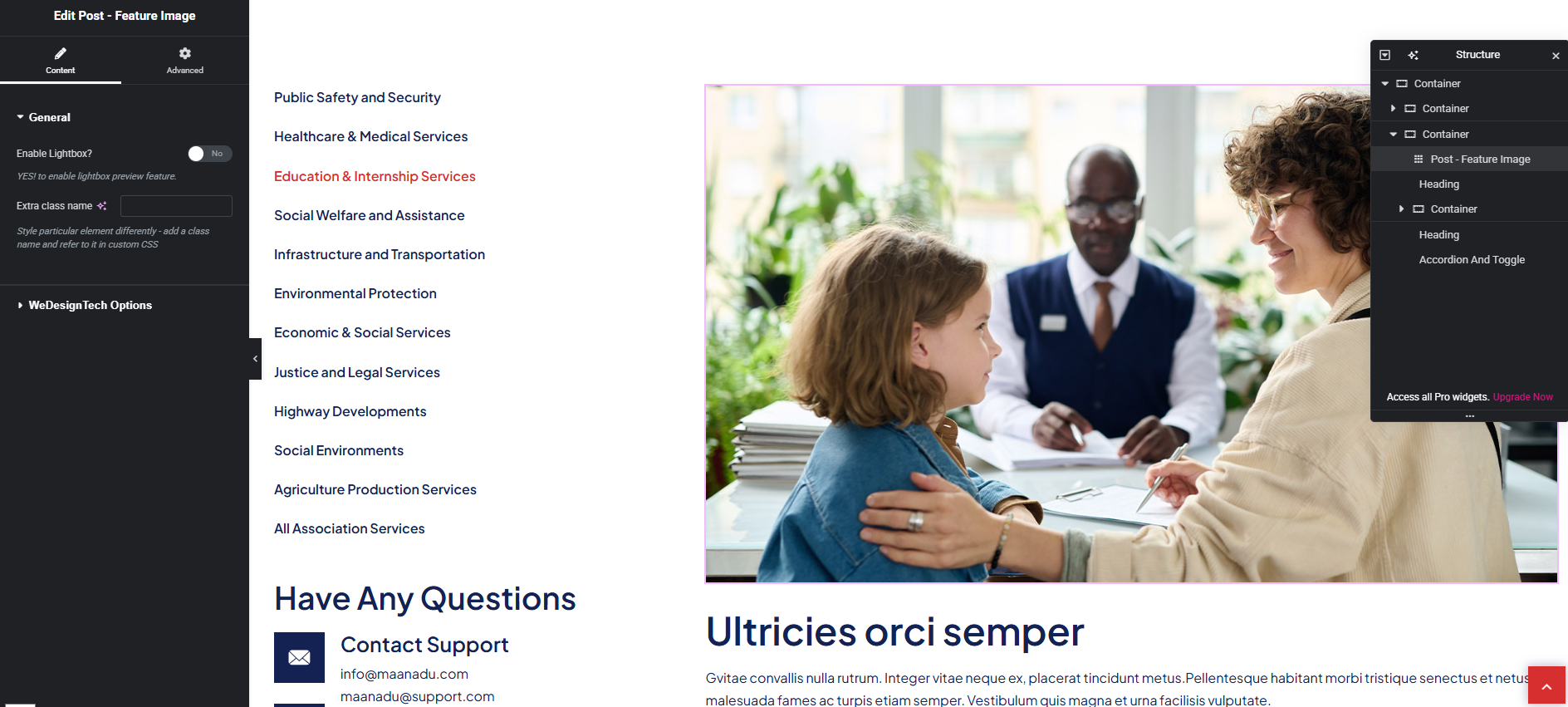 While using Elementor, you may find a custom **“Add Service”** widget provided by the theme. This widget allows dynamic display of services.