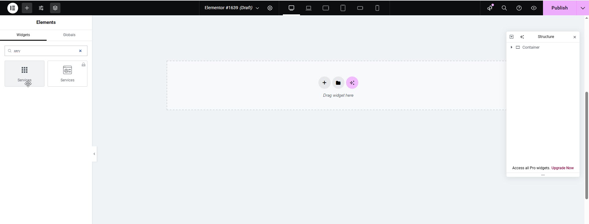 #### **Add Service (via Elementor Widget)**