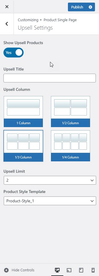 # Product Single Page – Upsell Settings
