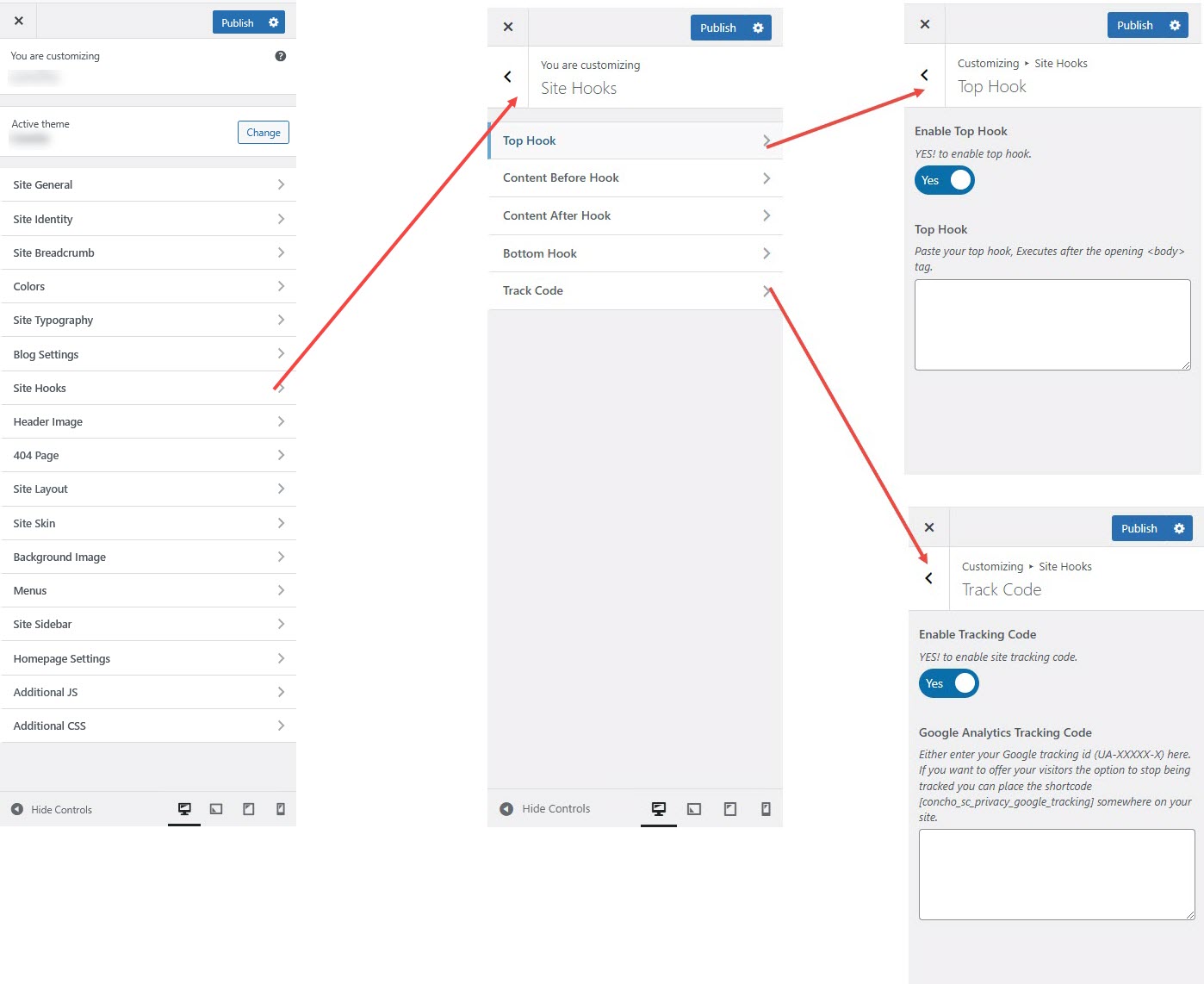 Site Hooks allow you to insert custom code or content at key structural points of your website without editing theme files. Below are the available hook options and their functions: